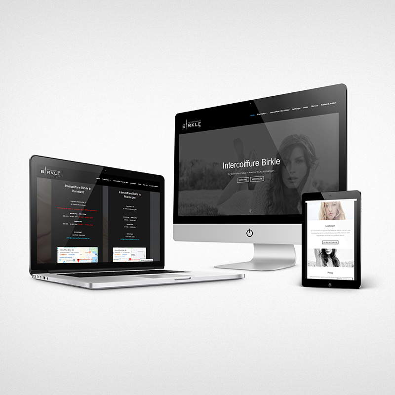 Für den Friseursalon Intercoiffure Birkle in Konstanz und mit zweitem Standort in Münsingen gab es Ende 2019 eine komplett neue Webseite in modernem responsive Design. Die Webseite mit ihren vielen Friseur-Fotos, großen Headerbildern, Fotos der beiden Standorte, Bewertungen, Leistungen und Preisen wirkt modern / zeitgemäß und aufgeräumt.